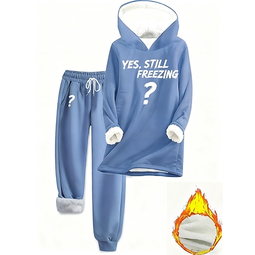 Per donna Quotidiano Elegante Set da due pezzi Tuta Set di Pantaloni Manica Lunga Con Cappuccio Grafico Lettera Coulisse Stampato Casuale Quotidiano Blu Nero Rosa Autunno Vestibilità regolare