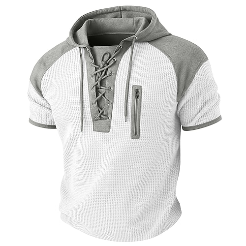 Per uomo Maglia Henley a nido d'ape Maglietta Manica Corta Con Cappuccio Collo con lacci Estate Primavera Tutte le stagioni Tinta unica Moda Designer Casual Blocco di colore Casuale Quotidiano