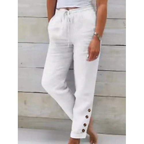 Per donna Misto cotone Chinos Moda Streetwear Essenziale Lunghezza intera Vita media Semplice Coulisse Tasca Comodità All'aperto Micro-elastico Quotidiano Vacanza Streetwear Grigio Bianco Verde