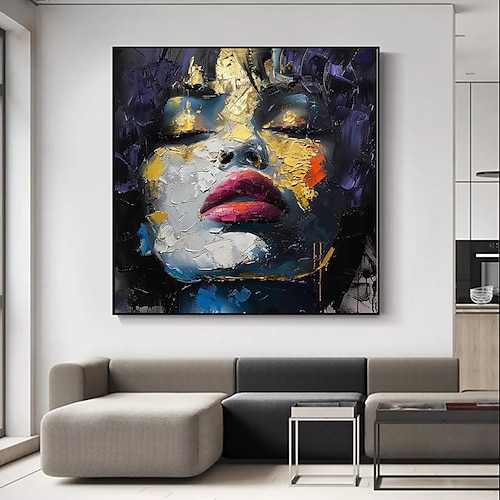 dipinto a olio fatto a mano acrilico tela decorazione da parete pop art viso di donna coltello disegno per arredamento casa dipinto arrotolato senza cornice non allungato