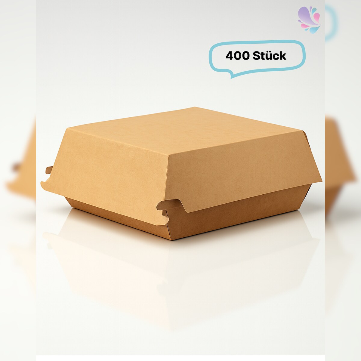 Blanc HYGIENIC Hamburger-Box groß 400 Stk, to go, take away, biologisch abbaubar, natürliches Design, weiße Innenschicht