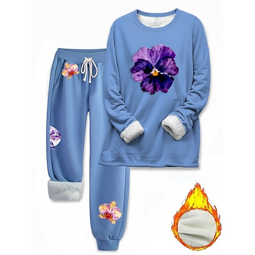 Per donna Elegante Caldo Moda Set da due pezzi Tuta Set di Pantaloni Manica Lunga Girocollo Floreale Stampato All'aperto Vacanza Quotidiano Nero Rosa Rosa scuro Primavera Vestibilità regolare