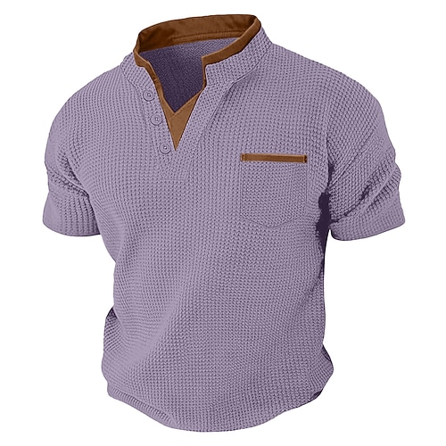 Per uomo Maglietta a Maglia Waffle Maglietta Manica Corta Scollo a V Collo alla coreana Estate Primavera Tutte le stagioni Tinta unica Blocco di colori Moda Designer Casual Bottoni Finto due pezzi