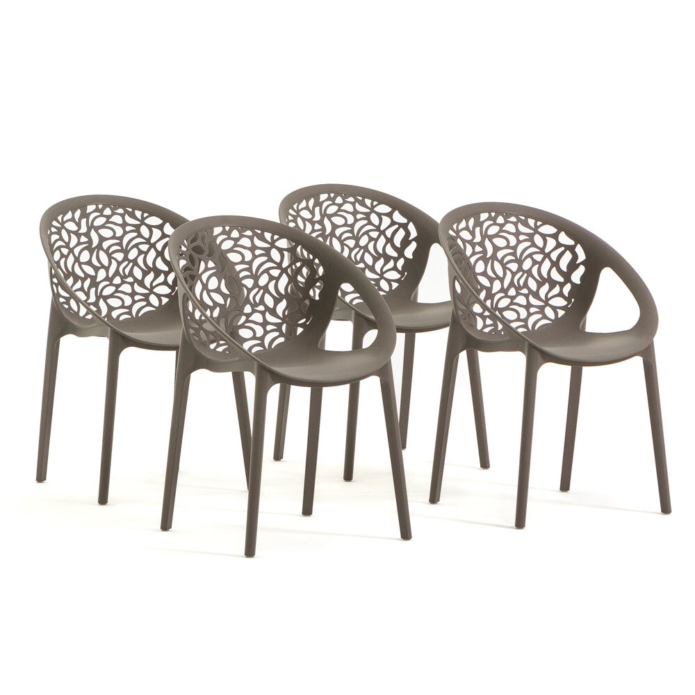 RATTATAN Set aus 4 stapelbaren Stühlen aus Polypropylen mit Glasfaser für Außen- und Gartenbereich,Bar,Restaurant oder Küche,modernes Design–Ambra–Taupe