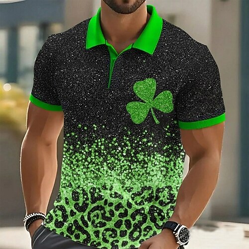 Per uomo San Patrizio Testo Divertente Lucky Clover Maglietta Maglia Henley Manica Corta Designer Retrò Vintage Casuale Quotidiano Streetwear Estate Primavera Verde scuro Nero Verde Henley Maglietta