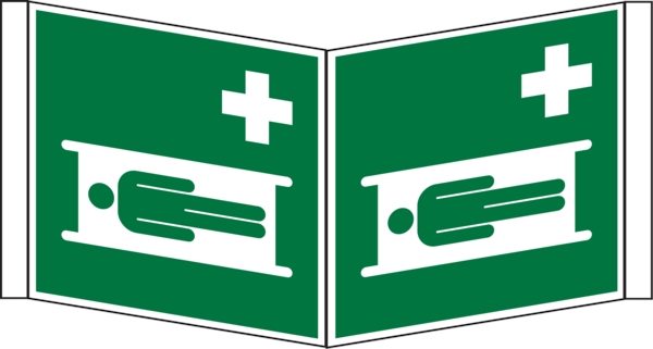 Rettungszeichen, Winkelschild Krankentrage E013 - ASR A1.3 (DIN EN ISO 7010) - 200x200x1 mm Kunststoff nachleuchtend