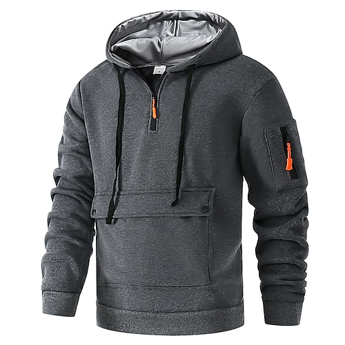 Per uomo Felpa con cappuccio Felpa con cappuccio in pile Felpa con cappuccio tattica Nero Blu marino Cachi Grigio chiaro Grigio scuro Con Cappuccio Semplice Tasca Zip a un quarto Sport Outdoor