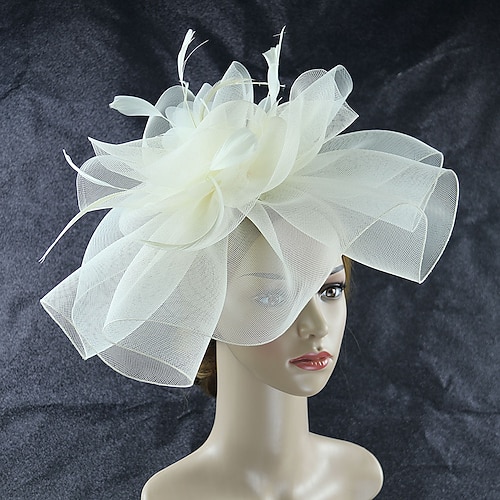 fascinators berretto Copricapo Organza Cappello Fedora Cappello a cilindro Cappello di velo Corsa di cavalli cocktail Elegante Retrò Con Piume Colore Puro Copricapo Copricapo