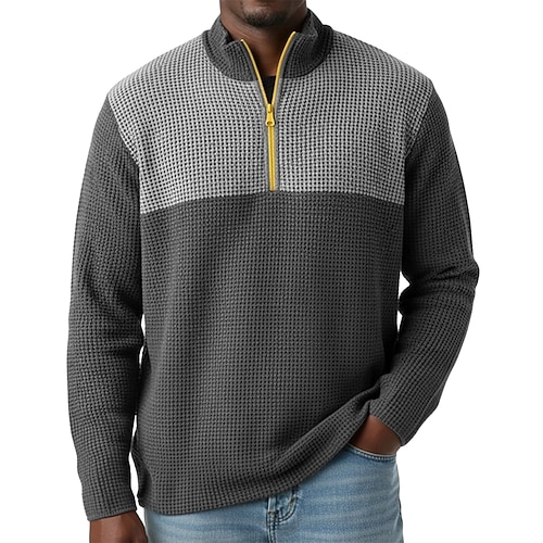 Per uomo Camicia a nido d'ape Maglietta Maglia Mezza Zip Camicia a Maniche Lunghe Manica Lunga Zip a un quarto Primavera Autunno Blocco di colori Moda Designer Essenziale Patchwork Vacanza