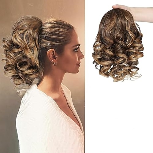 Chignon Chignon Con clip Capelli sintetici Pezzo di capelli Estensione capelli Riccio Feste Giornaliero Da tutti i giorni Marrone Medio Castano dorato Marrone scuro