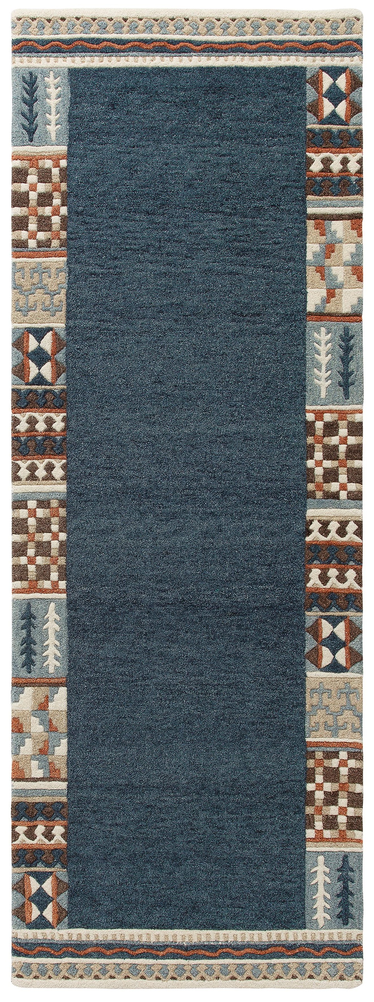 Läufer THEKO "Nuno, reine Wolle, handgearbeitet, mit Bordüre" Gr. 11, blau (dunkelblau), B:70cm H:14mm L:240cm, Wolle, Teppiche, handgetuftet, Brücke, Wohnzimmer, Schlafzimmer, Esszimmer