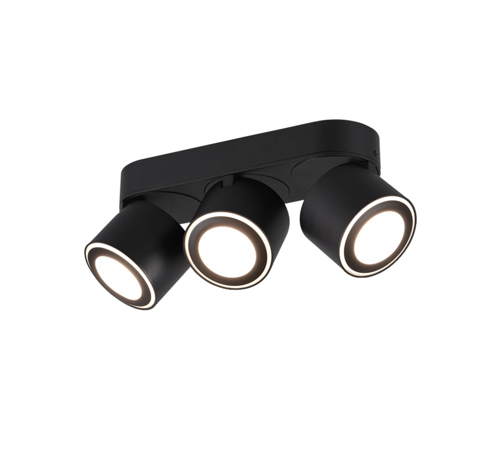 Plafoniera LED 3 luci, metallo, nero opaco, 27,3x8,7x10,6 cm