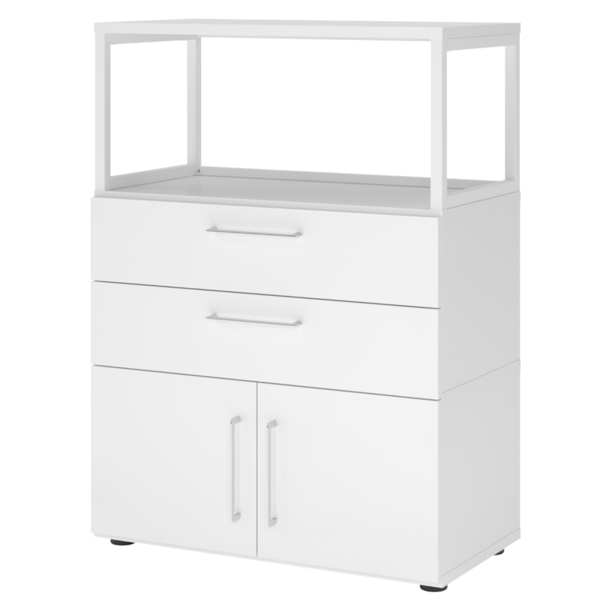 bümö flexi Schrank mit Flügeltüren, Regal & 2 Schubladen in weiß, Büroschrank mit werkzeuglosem Schnellmontage-Klicksysten in modularer Bauweise