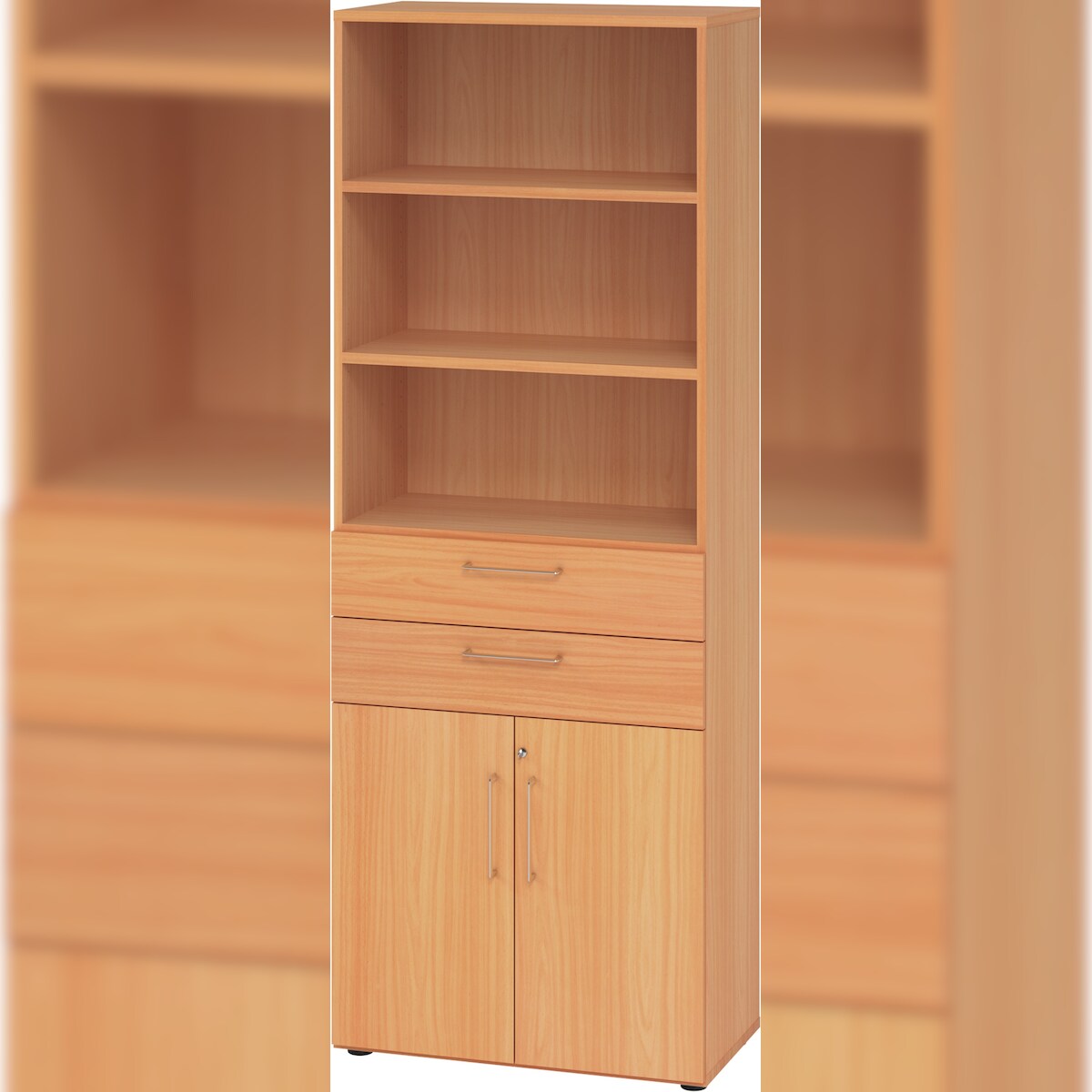 bümö Aktenregal & Schrank abschließbar, Büroschrank Regal & Schubladen Kombination Holz 80cm breit in Buche - Schrank für's Büro & Arbeitszimmer,