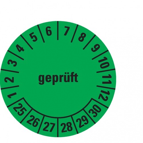 Dreifke® Prüfplakette geprüft 25-30, grün, ökologische Folie, selbstklebend, Ø 30mm, 500 Stk.