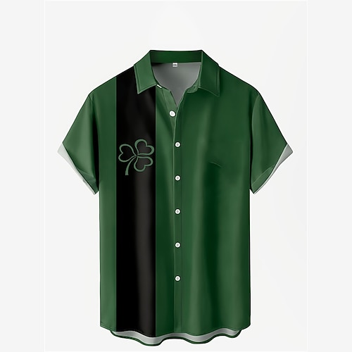 camicia casual da uomo a righe con quadrifoglio per il giorno di San Patrizio da indossare ogni giorno per uscire nel fine settimana autunno/autunno couverture maniche corte nero, bianco, verde s, m,