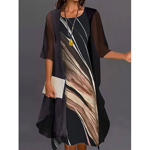 Per donna Insieme del vestito Abito a trapezio Vacanza Casual Grafico A righe Stratificato Stampato Mini Abito Mezza Manica Girocollo Quotidiano Nero Blu Beige Estate Primavera Vestibilità comoda