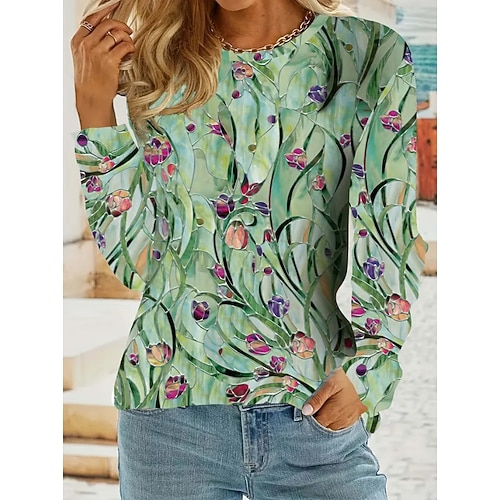 Per donna Maglietta Floreale Grafico Paisley Vintage Moda Elegante Manica Lunga Girocollo Top Regolari Quotidiano Weekend Stampato Blu Blu turchese Viola Arancione Marrone Primavera Autunno Inverno