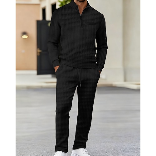 Per uomo Magliette Polo a Nido d'Ape Polo Vacanza Streetwear Zip a un quarto Manica Lunga Moda Essenziale Blocco di colori Patchwork 2 Pezzi Primavera Autunno Vestibilità regolare Nero Bianco Blu