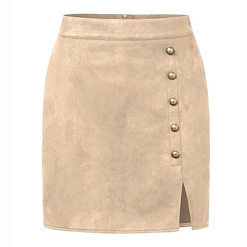 Per donna Gonna Elegante Vintage Moda Sopra il ginocchio Vita Alta Gonne Semplice Patchwork Micro-elastico Quotidiano Streetwear Vinaccia Nero Verde militare Marrone Primavera Poliestere