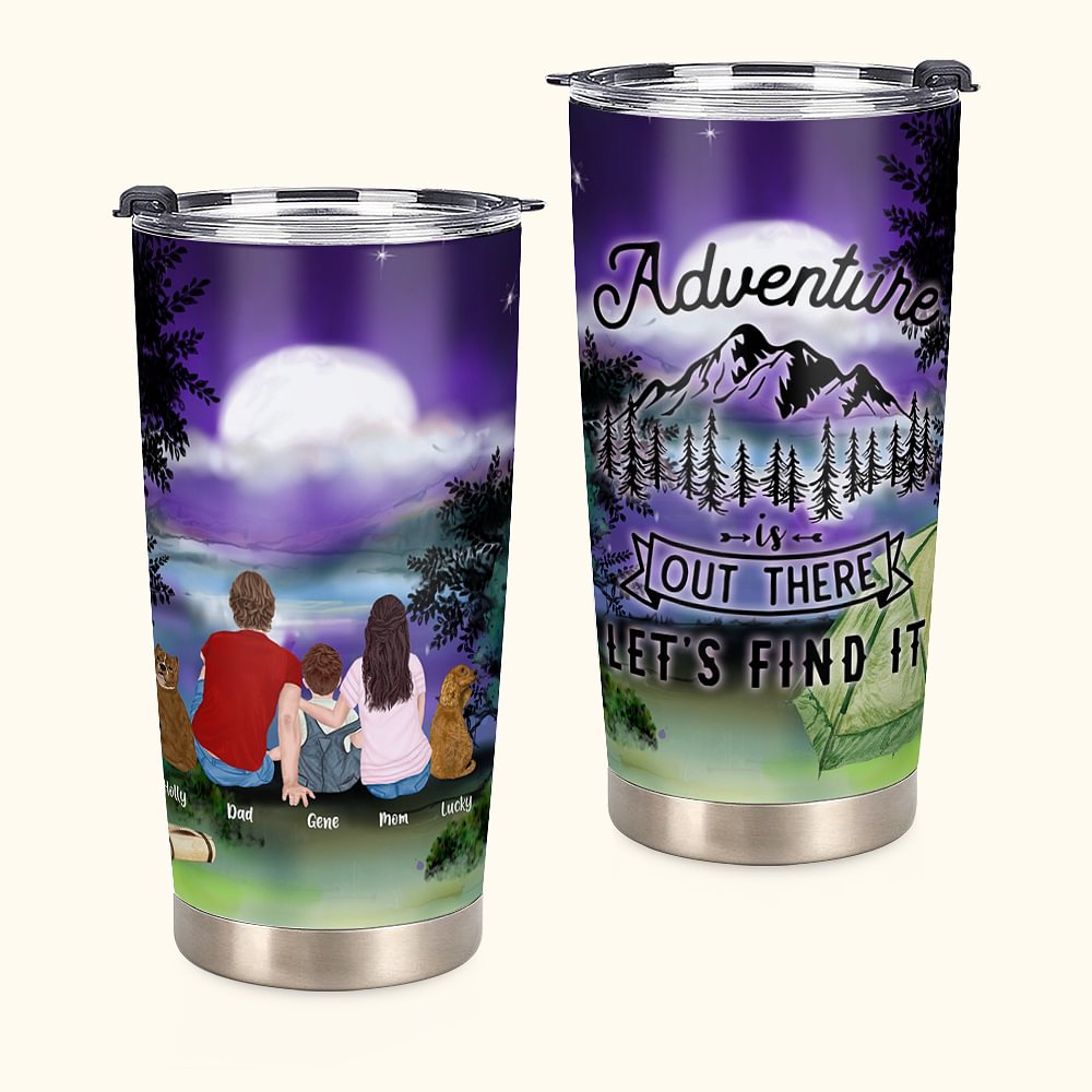 Personalizzato Adventure Camping Family with Pets 20oz Tumbler per bevande calde e fredde