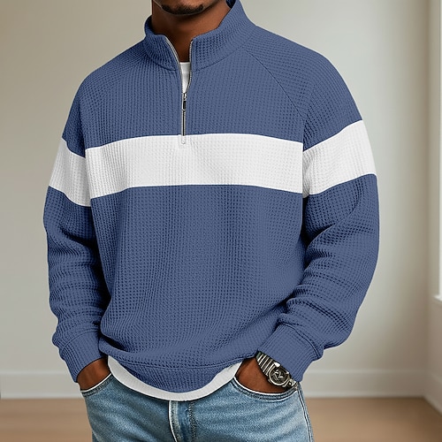 Per uomo Magliette Polo a Nido d'Ape Polo con zip a un quarto All'aperto Casual Zip a un quarto Manica Lunga Moda Moderno Tinta unica Patchwork Blocco di colore Autunno Primavera Autunno Autunno