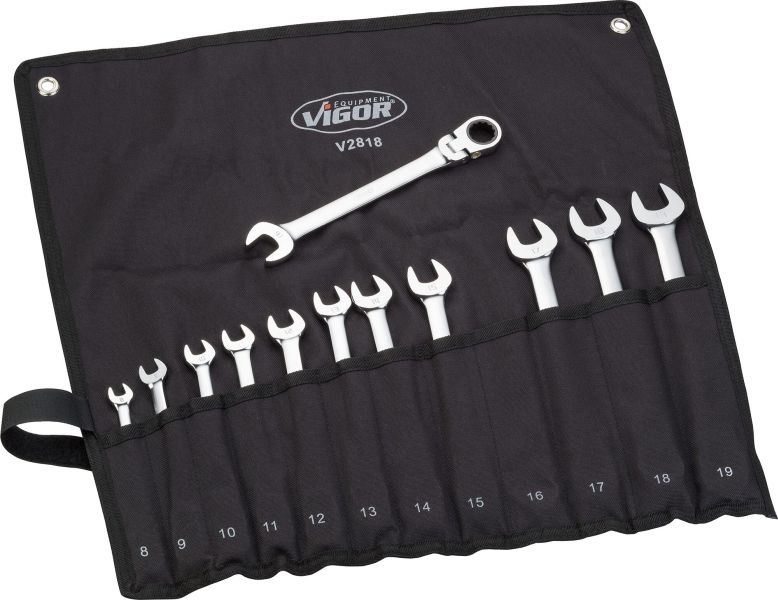 VIGOR Ratschen-Ringgabelschlüsselsatz Gelenk-Ratschen-Ring-Maulschlüssel Satz V2818