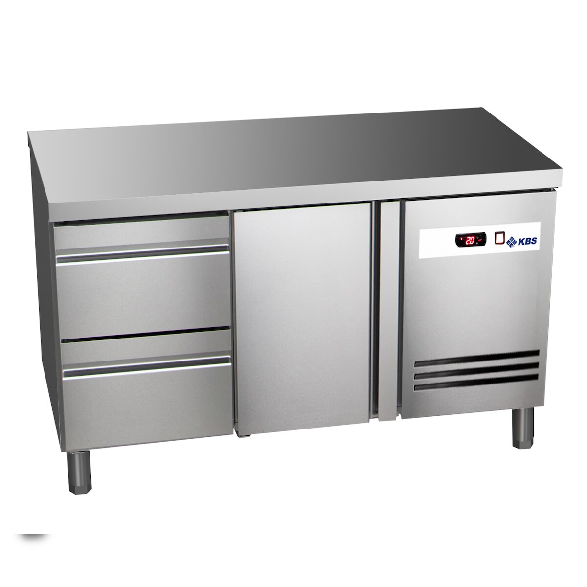 KBS Gastrotechnik KBS Kühltisch Ready KT2602 mit Arbeitsplatte 1 Tür, 2 halbe Schubladen, 1492 x 600 x 850 mm (BxTxH), steckerfertig - 230 V