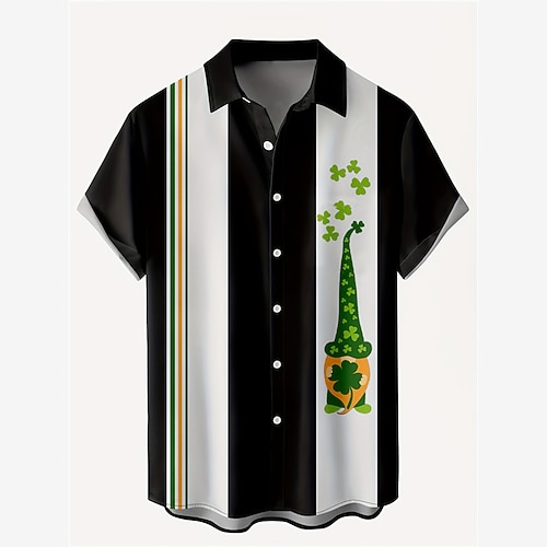 camicia casual da uomo a righe con quadrifoglio per il giorno di San Patrizio da indossare ogni giorno per uscire nel fine settimana autunno/autunno couverture maniche corte nero, bianco, verde s, m,