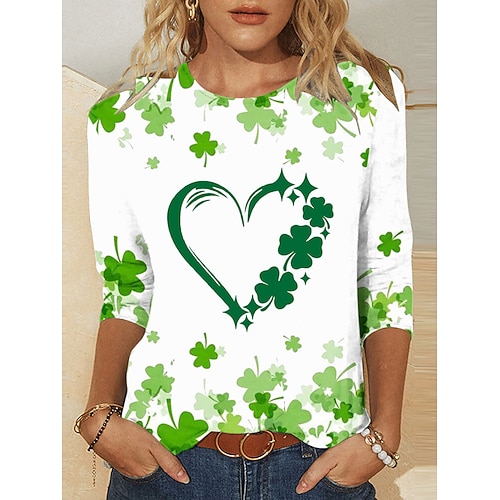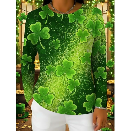 Maglietta da donna per il giorno di San Patrizio grafica Shamrock piante moda elegante classica maniche lunghe girocollo scollo rotondo top regolari stampa quotidiana bianca verde scuro verde estate