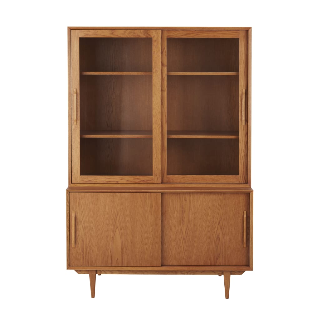 Buffet haut 4 portes 3 étagères grande niche blanc aspect chêne clair