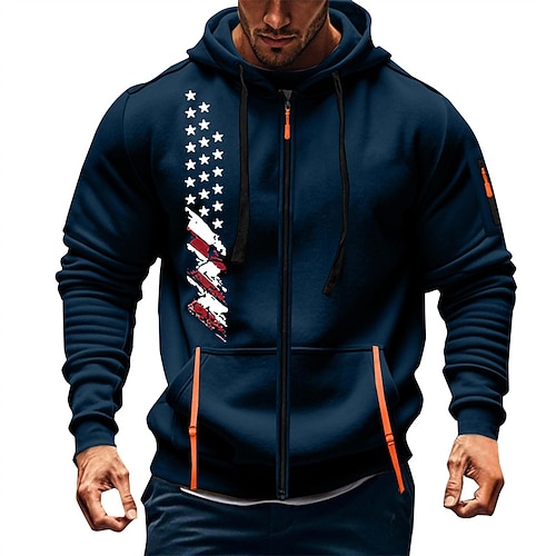 Per uomo Felpa con cappuccio Nero Blu marino Con Cappuccio Bandiera Nazionale Tasca Stampato Sport Outdoor Quotidiano Ferie Streetwear Essenziale Casual Primavera Autunno Abbigliamento Felpe con