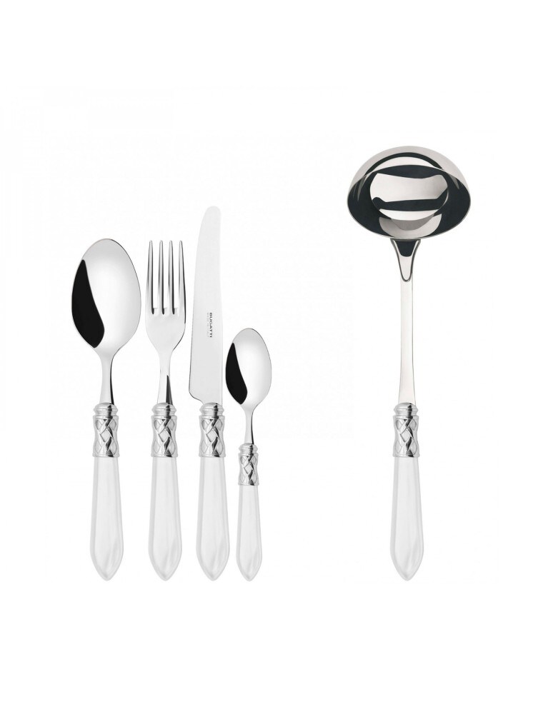 aladdin chromring, 49-teiliges besteckset, weißer griff, galeriebox, casa bugatti
