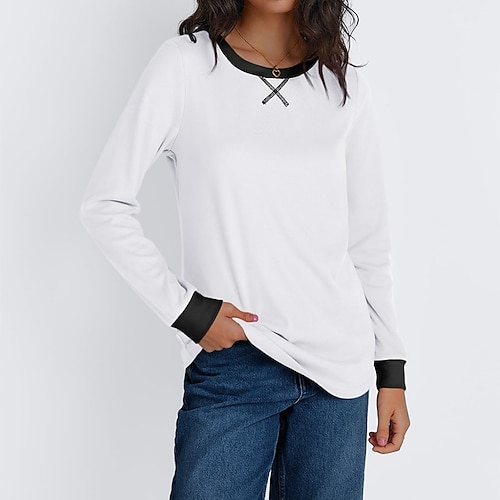 Per donna Maglietta Blocco di colori Elegante Moda Classico Manica Lunga Girocollo Top Regolari Quotidiano Uscire Weekend Patchwork Blu Bianco Blu marino Marrone Rosa Primavera Autunno