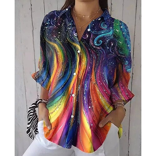 Per donna Camicia Ombre Grafico Vintage Elegante Manica Lunga Manica a Campana Colletto a Camicia Top Regolari Quotidiano Lavoro Ferie Arricciato Arcobaleno Estate Primavera Autunno