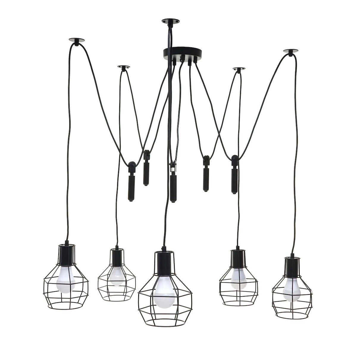 Mendler Pendelleuchte HWC-H85, Hängelampe Hängeleuchte, Industrial Metall höhenverstellbar schwarz ~ 5x Gitterlampenschirm