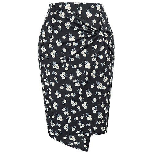 Per donna Gonna Aderente Elegante Moda Casual Lunghezza al ginocchio Vita Alta Gonne Floreale Arricciato Micro-elastico Streetwear Quotidiano Blu Nero Bianco Verde Estate Poliestere