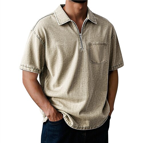 Per uomo Polo Polo con zip a un quarto Abbigliamento quotidiano Data Zip a un quarto Manica Corta Moda Essenziale Blocco di colori Cerniera Tasca Estate Vestibilità regolare Nero Blu Cachi Verde