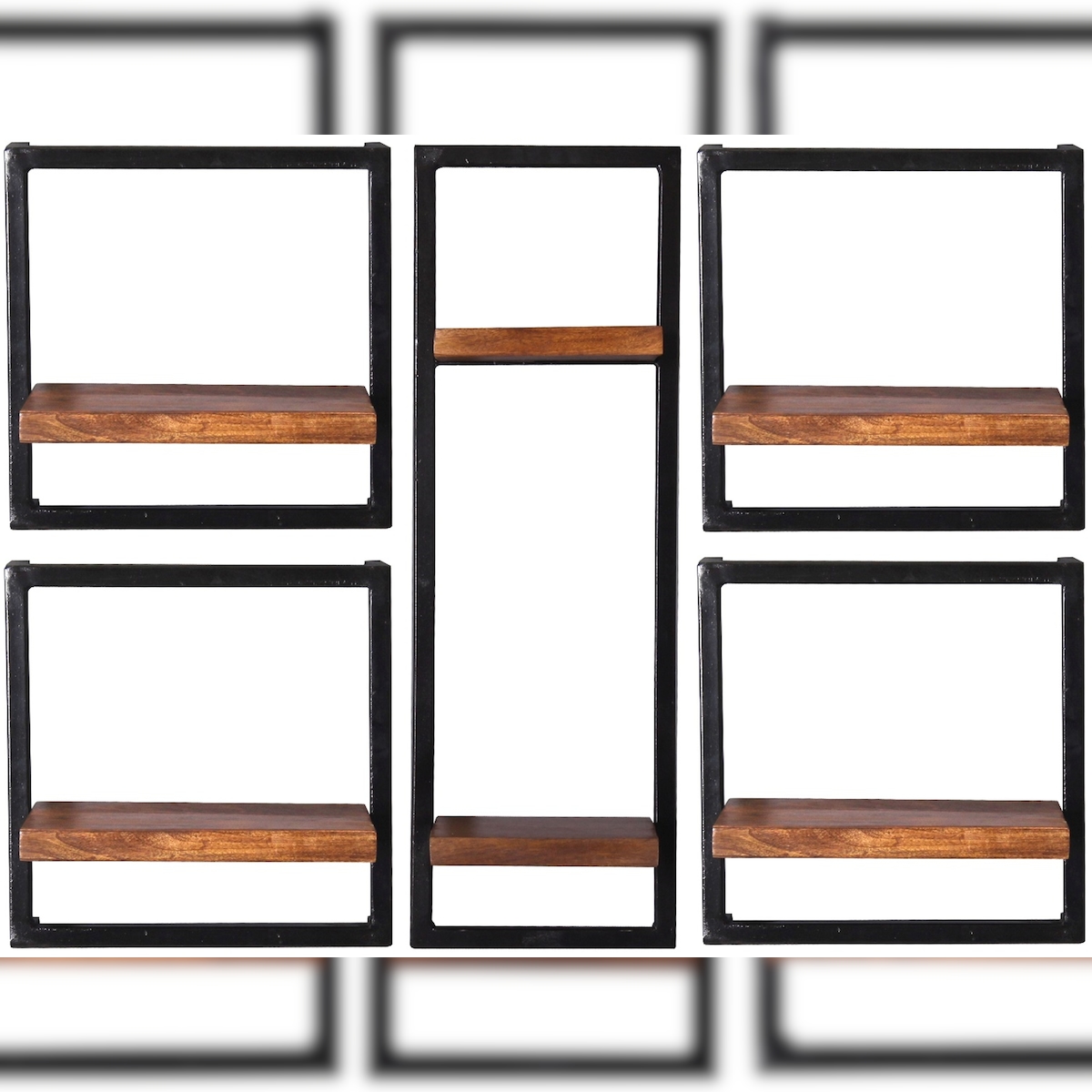 SIT Möbel Wandregal-Set | 5-teilig | Mangoholz mit Altmetall | Serie PANAMA | B 105 x T 25 x H 75 cm | natur