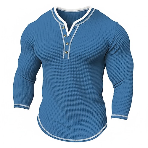 Per uomo Maglietta Maglia Henley a nido d'ape Maglia Henley Camicia a Maniche Lunghe Manica Lunga Scollo a V Henley Primavera Autunno Tutte le stagioni Blocco di colori Moda Designer Essenziale