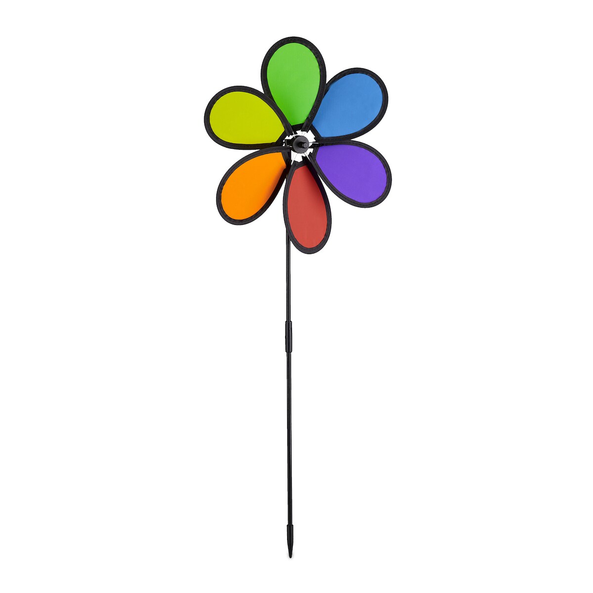 Relaxdays Windrad Blume, 2er Set, Deko Gartenstecker für Balkon, Terrasse & Garten, HBT 66 x 27 x 7 cm, Regenbogen, bunt