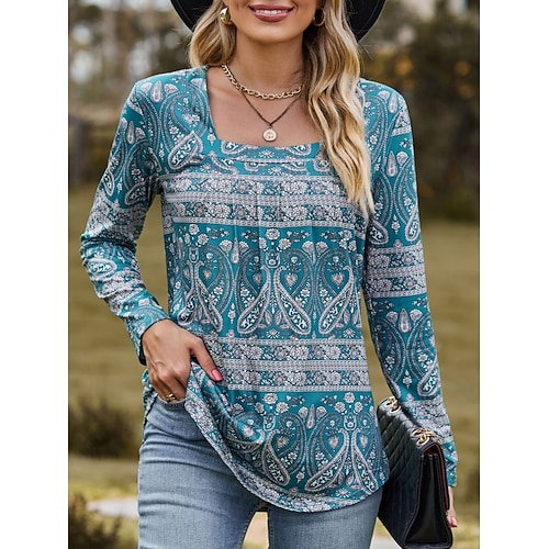 Per donna Blusa Paisley A righe Elegante Casual Manica Lunga Collo quadrato Top Regolari Quotidiano Ferie Abbigliamento da vacanza Stampato Nero Rosa Blu Verde Grigio Primavera Autunno Inverno