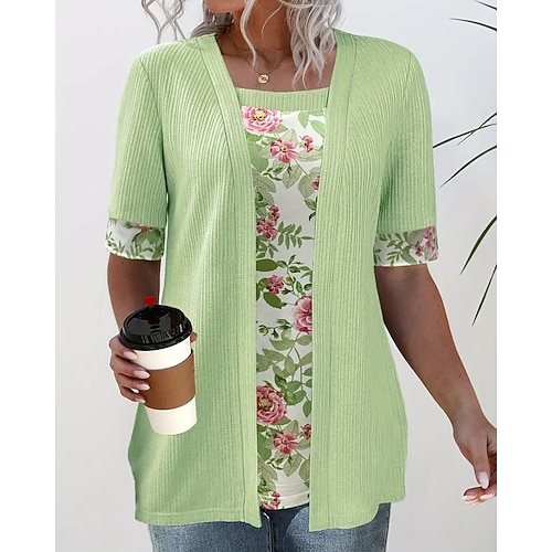 Per donna Blusa Floreale Grafico Vintage Tropicale Elegante Mezza Manica Collo quadrato Top Regolari Quotidiano Ferie Uscire Patchwork Stampato Verde chiaro Blu Viola chiaro Estate Primavera Autunno
