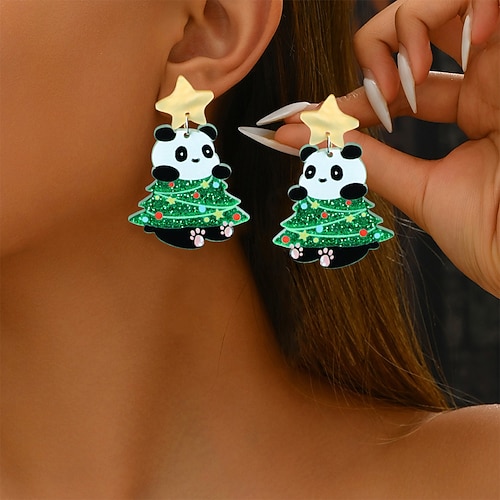 orecchini natalizi a forma di panda con albero di Natale scintillante e stella - grazioso regalo di gioielli per le feste
