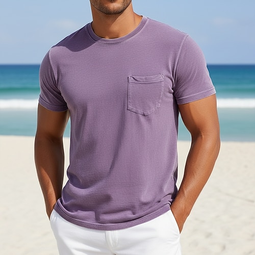 Per uomo Maglietta Camicia 100% cotone lavaggio acido Manica Corta Girocollo Estate Primavera Tutte le stagioni Tinta unica Elegante Vintage Neutro Tasca Girocollo Puro Casuale Casa All'aperto Blu