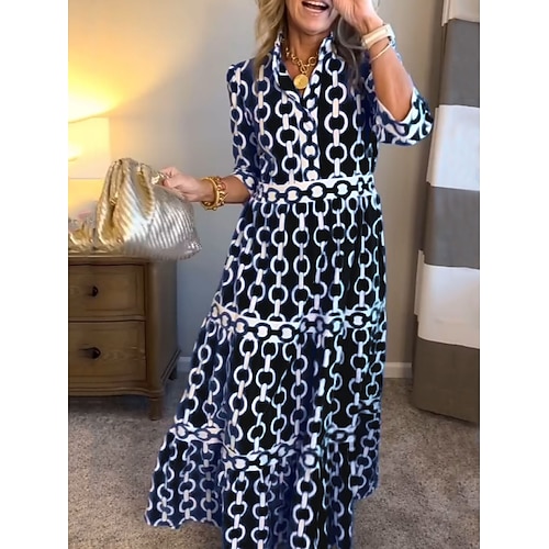 Per donna Abito maxi Abito a trapezio Vacanza Casual All'aperto Uscire Vestibilità regolare Grafico Manica Lunga Collo ripiegato Blu Nero Rosso Viola Estate Primavera Autunno