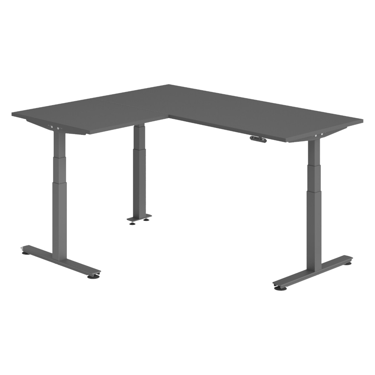 bümö Eckschreibtisch elektrisch höhenverstellbar L-Form: 180 x 160 cm in graphit, Gestell graphit - Stehschreibtisch mit Memory-Steuerung,