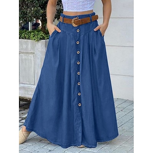 Per donna Gonna Linea A Moda Casual Maxi Vita Alta Gonne Semplice Tasca Micro-elastico Streetwear Quotidiano Nero Rosso Blu reale Primavera Poliestere