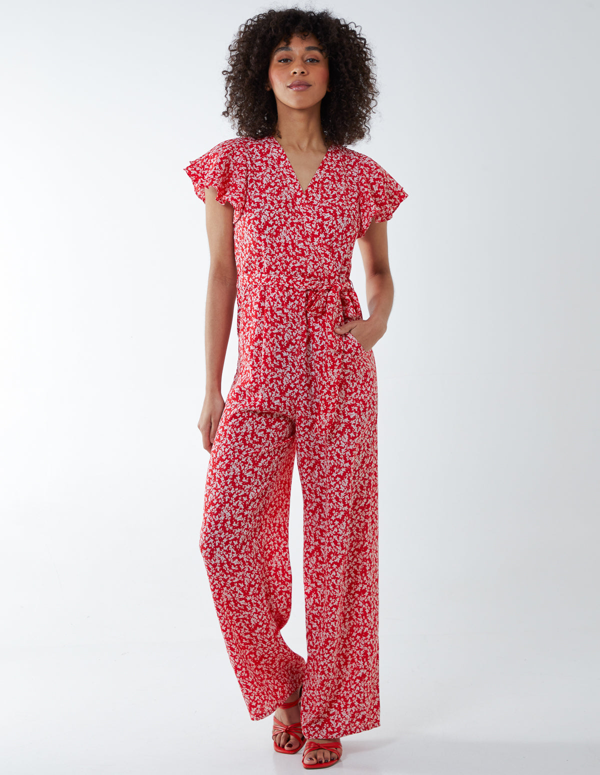 Blue Vanilla Womens Rhiannon - Wrap Front Frill Sleeve Jumpsuit - Red - Size 8 UK | Blue Vanilla Sale | Discount Designer Brands