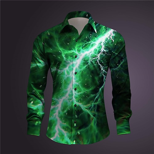 Per uomo Alleggerimento Camicia Camicia con bottoni Manica lunga Astratto Sottoculturale Da tutti i giorni Per uscire Primavera Collo ripiegabile Stampa Bottone giù Blu Viola Arancione Verde Grigio